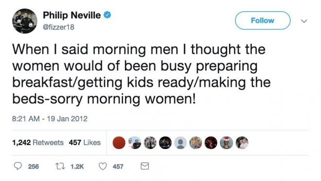However, it wasn’t long before controversial tweets posted by Neville under his username @fizzer18 in 2012 were uncovered that cast a shadow on his appointment.