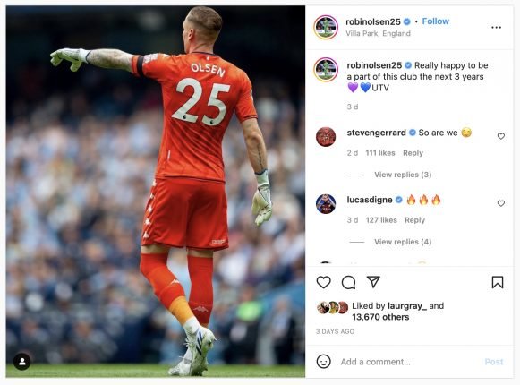 Olsen has 57 caps for his country and will be an experienced pair of hands for Steven Gerrard’s team going into next season.